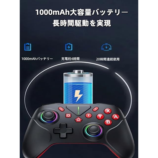【大容量バッテリー&長時間プレイ】1000mAhバッテリー内蔵で、長時間のゲームプレイも安心してお楽しみいただけます。