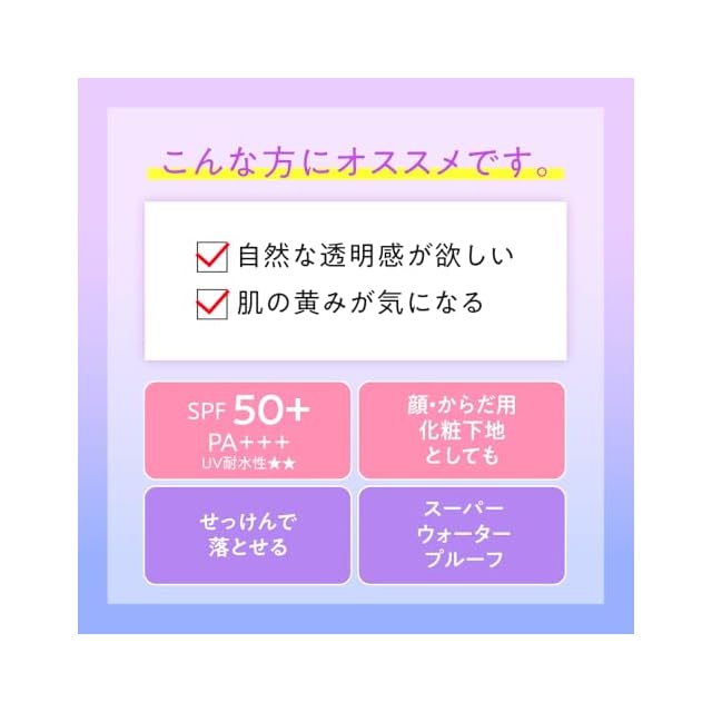 SPF50+ PA++++ /スーパーウォータープルーフ(80分間にわたる耐水実験に合格)