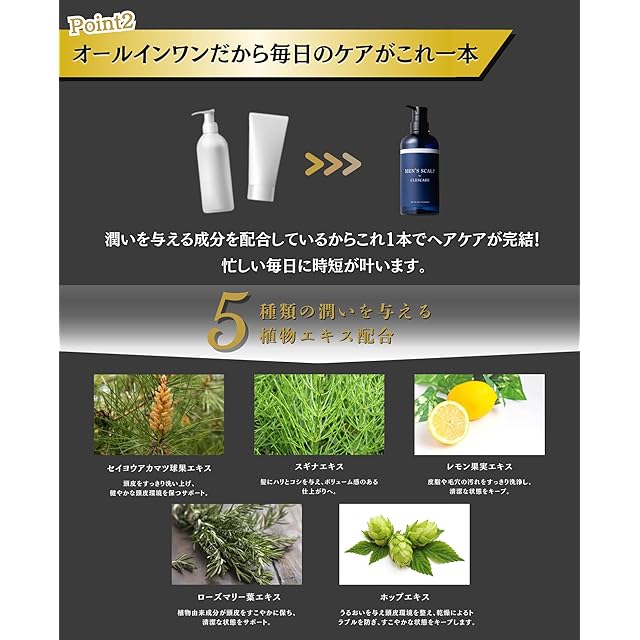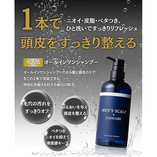 ✅【大人気のオールインワン スカルプシャンプー】ニオイ・皮脂・べたつきなど、男性特有の頭皮の悩みを、1本で悩みをサポート。