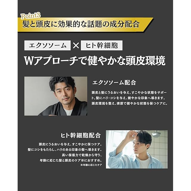 ✅【話題の成分を配合】注目の「エクソソーム」や「ヒト幹細胞由来成分」を配合。健やかな頭皮環境を整えます。