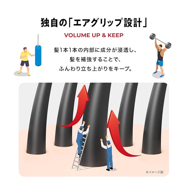 ✅独自の『エアグリップ設計』…髪1本1本の内部に成分が浸透し、髪を補強することで、ふんわり立ち上がりをキープ