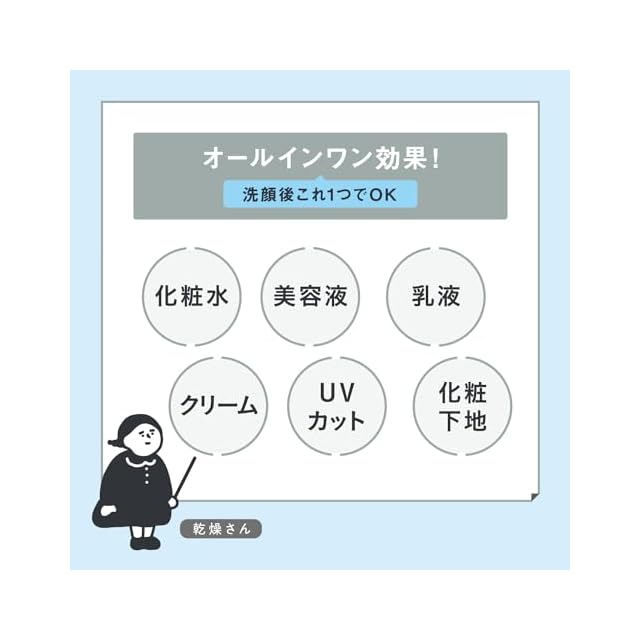 オールインワン効果(化粧水/美容液/乳液/クリーム/UVカット/化粧下地)!洗顔後これ1つでOK
