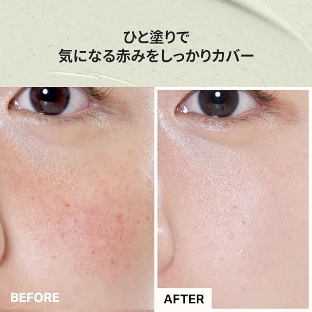 【日本人の肌色になじむ自然なベージュ】 グリーンからベージュに変化するカラーチェンジクリーム 日本人の肌色にも自然になじみ、赤みやくすみをカバー 浮かずにナチュラルな仕上がりを叶えます。