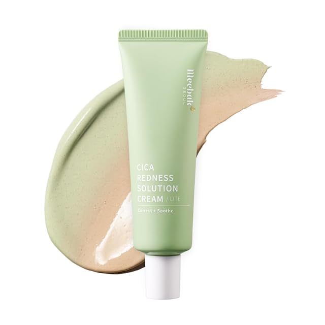 商品名:Meebak Cicaレッドネスクリームライト 50mL |化粧下地 CCクリーム 赤みカバー 敏感肌 乾燥肌 韓国コスメ ノファンデー グリーンベース トーンアップ