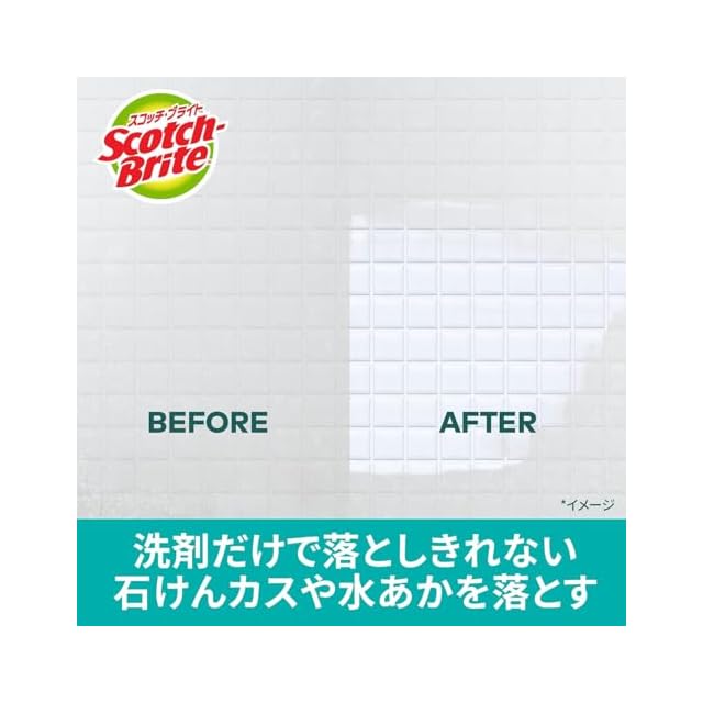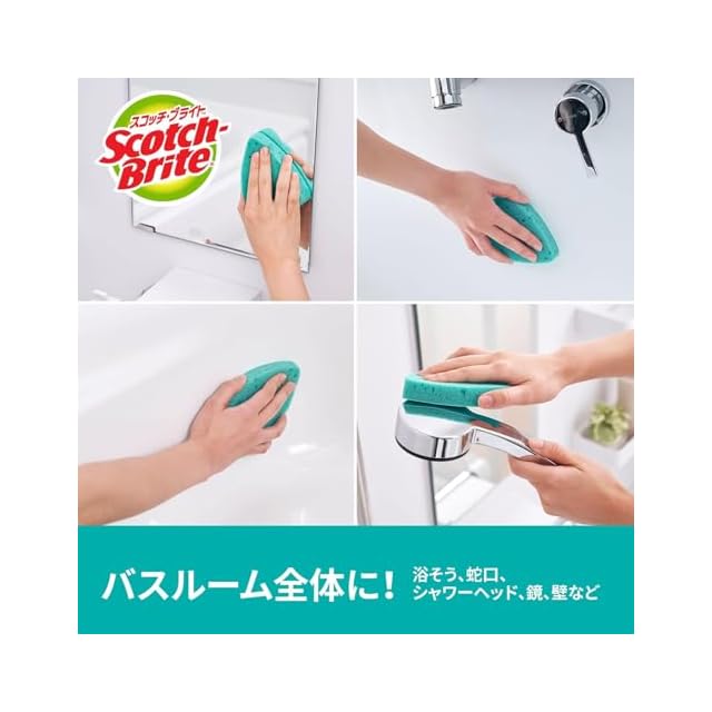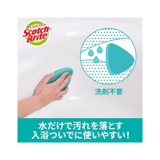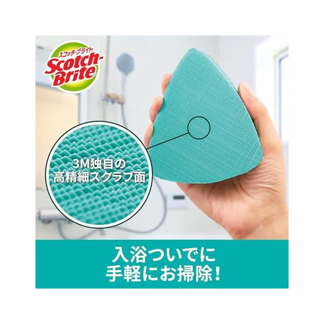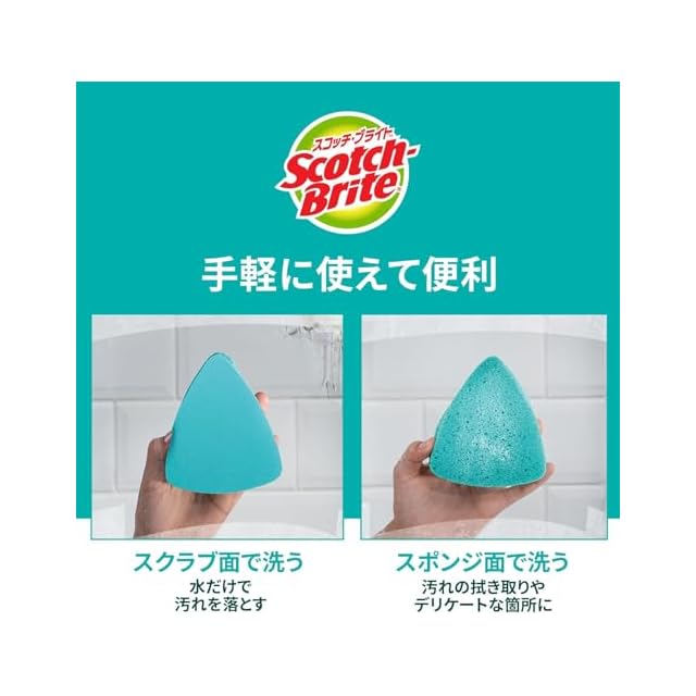 【洗剤だけでは落としきれない汚れも落ちる、驚きの清潔力】 細かなピラミッド形状でやわらかい研磨粒子が入っている3M独自の高精細スクラブ面が、洗剤だけでは落とせない石鹼カスや水垢もスッキリ落とします。