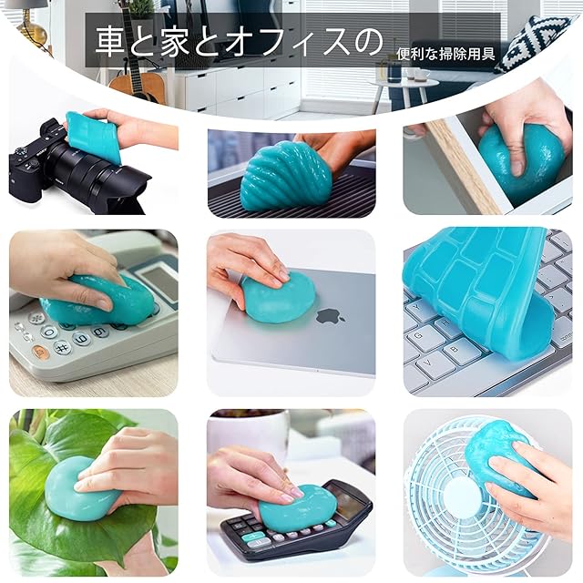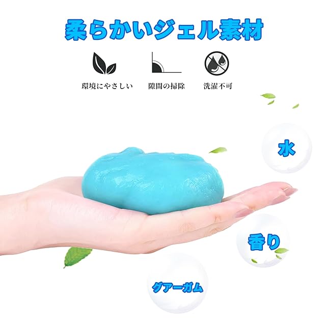 【ハイテククリーニング素材】植物性の柔らかいゴム成分から作られており、無害、無毒で生分解性であり、お手入れも簡単、安心してお使いいただけます。キーボード 掃除用スライムはホコリを吸着しますが、手には付着しません。車内清掃スライムは細かい塵をよく吸着し、細かい掃除には最適です