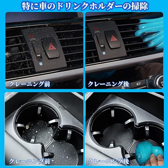 【お掃除用カースライム】掃除用のスライムクリーナーは、車の隅々までクリーニングするのに最適です。車の細かい隙間に入り込んで、ホコリや汚れ、パンくず、ペットの毛などをしっかり取り除きます