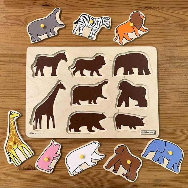 【人気の動物が大集合】ライオンやキリン、ゾウやシマウマなど子どもに親しみのある動物をモチーフにしたパズルです。