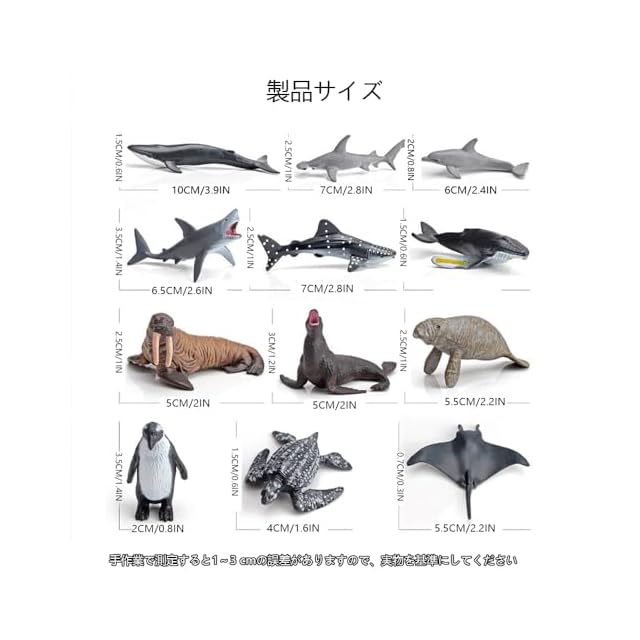 商品名:12PCSミニ農場動物 海洋動物 フィギュアセット ミニ動物フィギュア リアルな動物模型 養殖場 農場 家畜 海洋おもちゃ PVCプラスチック製 おもちゃ 玩具 誕生日プレゼント 飾り物 コレクション 6歳以上(海洋動物)