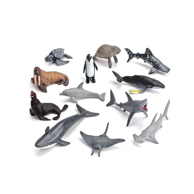 12PCSミニ農場動物 海洋動物 フィギュアセット ミニ動物フィギュア リアルな動物模型 養殖場 農場 家畜 海洋おもちゃ PVCプラスチック製 おもちゃ 玩具 誕生日プレゼント 飾り物 コレクション 6歳以上(海洋動物)