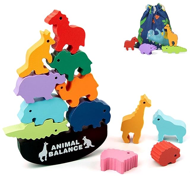 Shinse 積み木 バランスゲーム 知育玩具 木のおもちゃ カラフル モンテソッリー 幼児教育 集中力 早期開発 赤ちゃん 子供 収納袋付き 動物