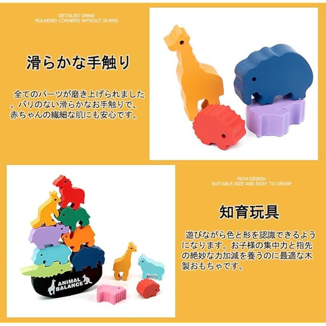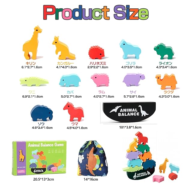 商品名:Shinse 積み木 バランスゲーム 知育玩具 木のおもちゃ カラフル モンテソッリー 幼児教育 集中力 早期開発 赤ちゃん 子供 収納袋付き 動物