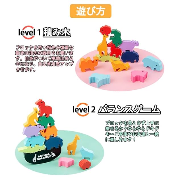 【思考力up】子供の集中力、バランス感知を鍛えられるバランス積み木です。遊びながら、どうやって全てのブロックを積み上げられるかを考えることで思考力の早期開発ができます。