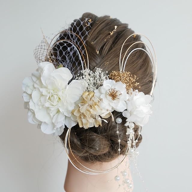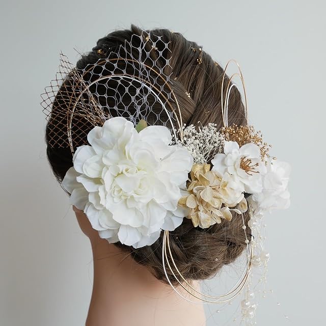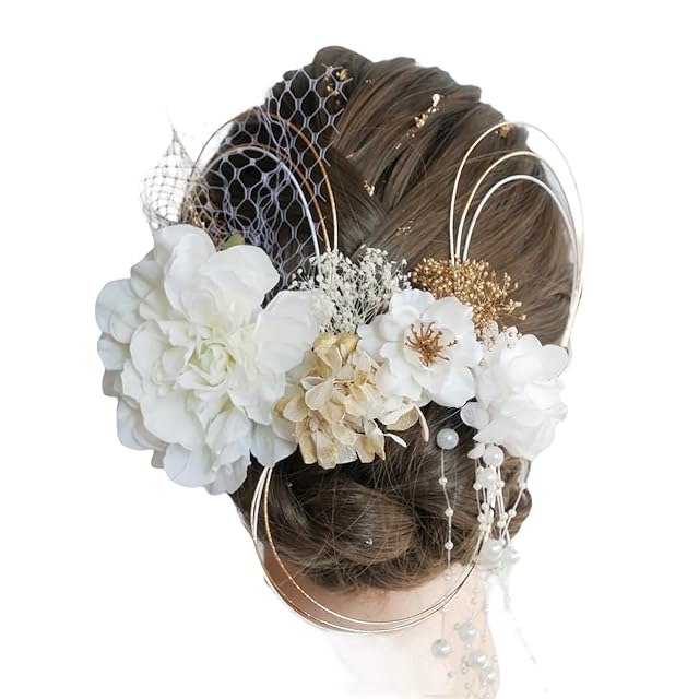 [Lomeri ロメリ] ダリアの髪飾り パールシャワー 成人式 卒業式 前撮り 結婚式 水引 前撮り D41 (ホワイト)