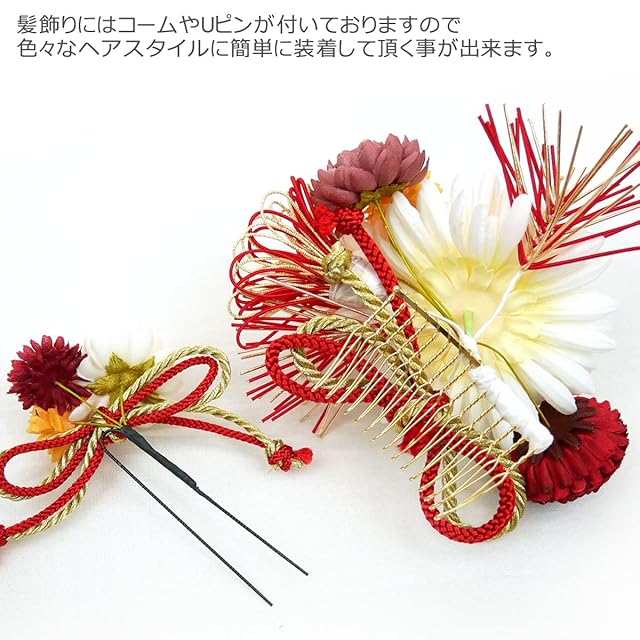 商品名:髪飾り 2点セット 振袖 成人式 wk-335 菊 水引 白 赤