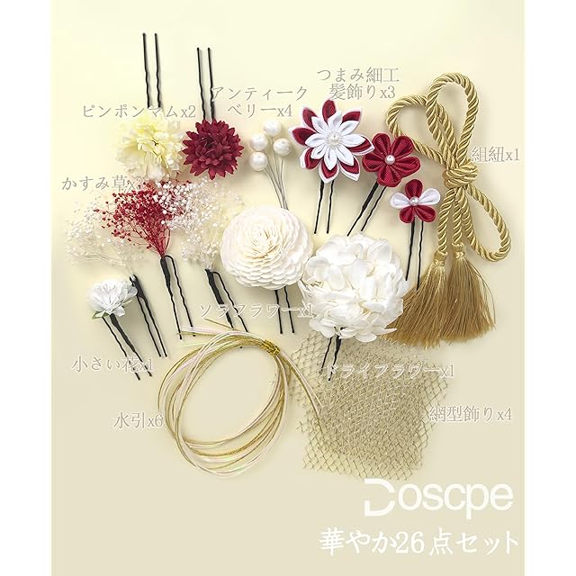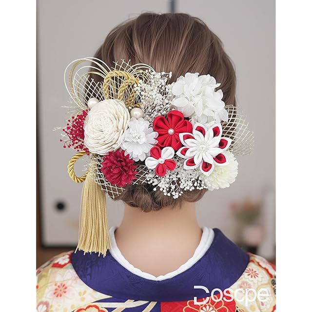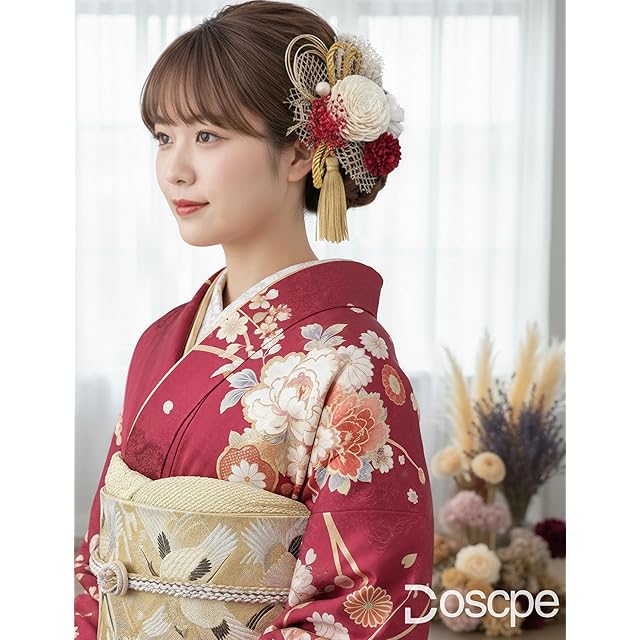 ご使用時: 髪飾りは繊細な作りとなっております。無理な力を加えないようご注意ください。また、ヘアスプレーや香水などが直接かからないようにしてください。 保管方法: ご使用後は、直射日光を避け、湿気の少ない場所で保管してください。型崩れを防ぐため、箱などに入れての保管をおすすめします。 使用シーン:Doscpe の髪飾りは、成人式、卒業式、七五三といった特別な日から、花火大会やお祭りまで、様々なシーンであなたの装いを美しく彩ります。