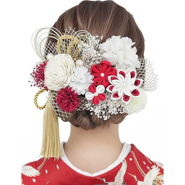 Doscpe 成人式 髪飾り 振袖 卒業式 つまみ細工 ソラフラワー 水引 金箔 着物 和装 振袖 袴 ヘッドドレス 結婚式 七五三 チュール 赤 レッド
