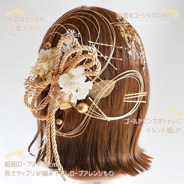 商品名:Lomeri ロメリ 水引と金箔の髪飾り (水引×ドライフラワーセット)MR3
