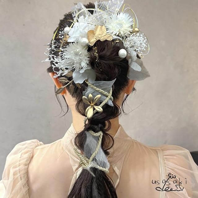 【使用シーン】和装・洋装を問わず、様々なシーンでご使用いただける髪飾りです。成人式、卒業式、 前撮り、結婚式、二次会、七五三、発表会まで幅広くお使い頂けます。
