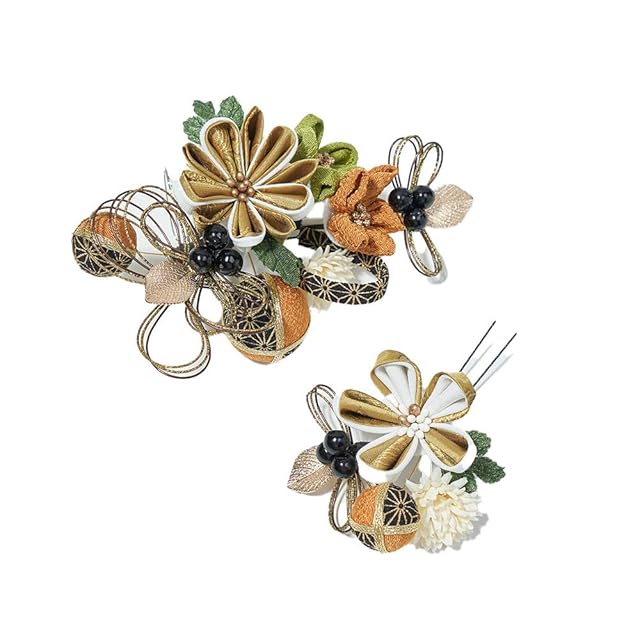 商品名:髪飾り 成人式 振袖 着物 リボン 玉飾り コーム 結婚式 和装 着物 Watmosphere ワトモスフィア 324-315 (マスタード)
