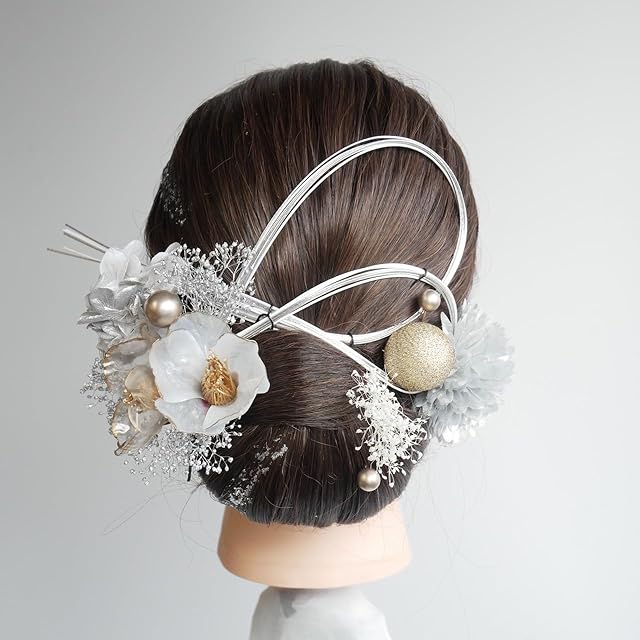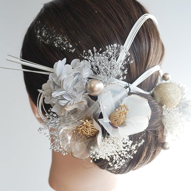 [Lomeri ロメリ] タイトヘア 髪飾り おかみさん ロメリ ドライフラワーの髪飾り 成人式 卒業式 結婚式 袴 G16 (シルバー)
