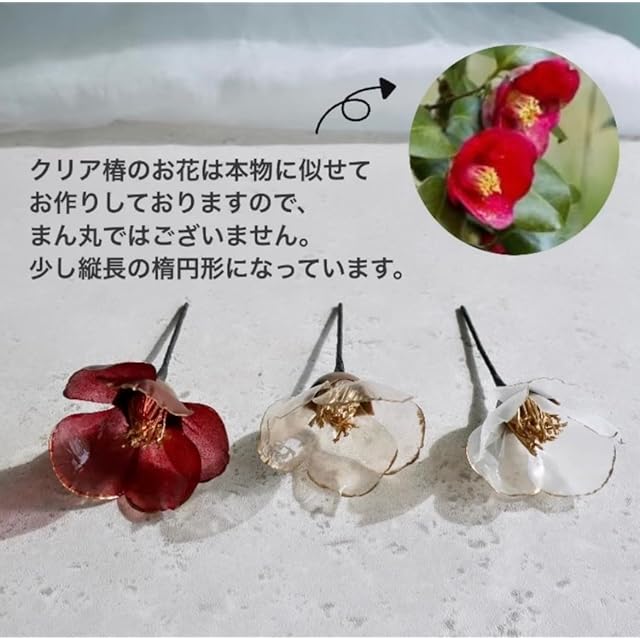クリア椿と水引(7本)和玉 ドライフラワーを組み合わせた華やかなセットです。