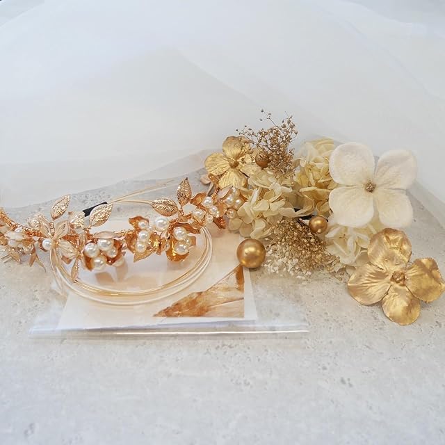 商品名:[Lomeri] ロメリ ゴールド カチューシャ ドライフラワーの髪飾り 成人式 卒業式 結婚式 袴 ゴールドE20