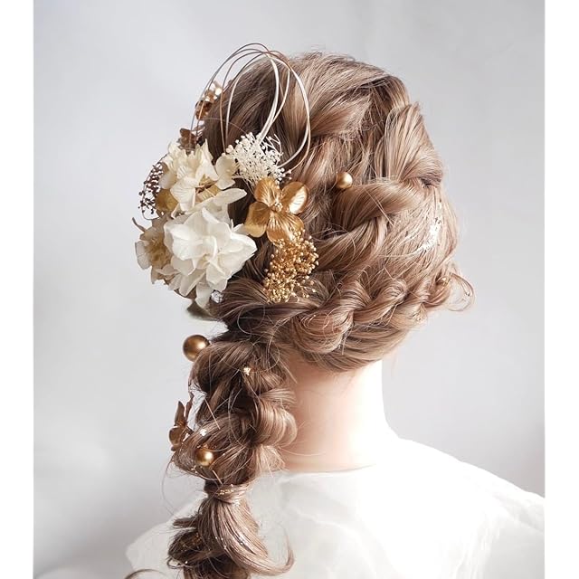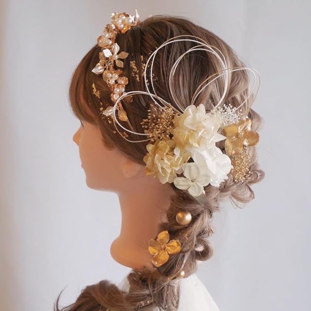[Lomeri] ロメリ ゴールド カチューシャ ドライフラワーの髪飾り 成人式 卒業式 結婚式 袴 ゴールドE20