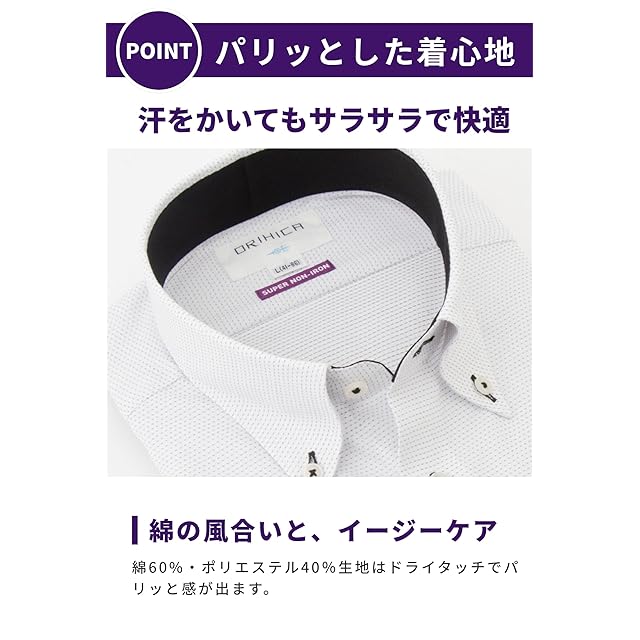 綿60%・ポリエステル40%生地はドライタッチでパリッと感が出ます。