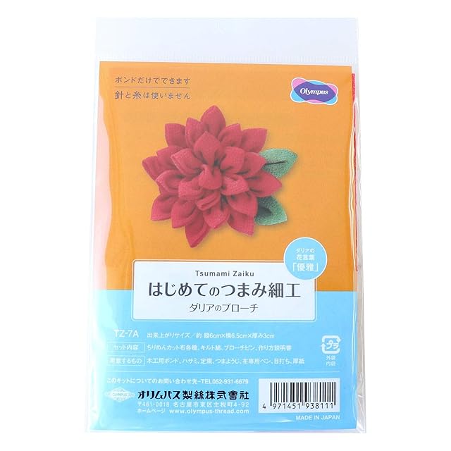 商品名:オリムパス製絲(Olympus Thred) はじめてのつまみ細工 キット ダリアのブローチ H6×W6.5×D3cm OLY-TZ7A 赤