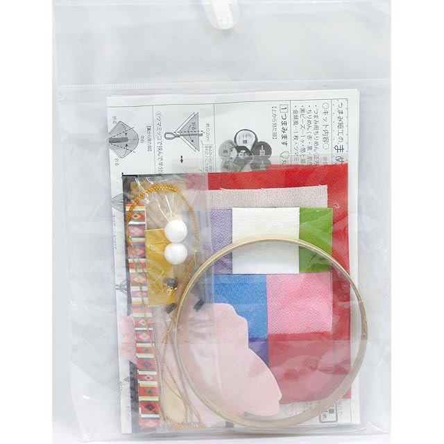 セット内容:つまみ用ちりめん、ちりめん、真球スチロール、刺し目、金紐、座金、黒ビーズ、芴と扇、紙管、丸抜ボール紙、桜型もうせん、カラー用紙、金屏風、ツマミッコ