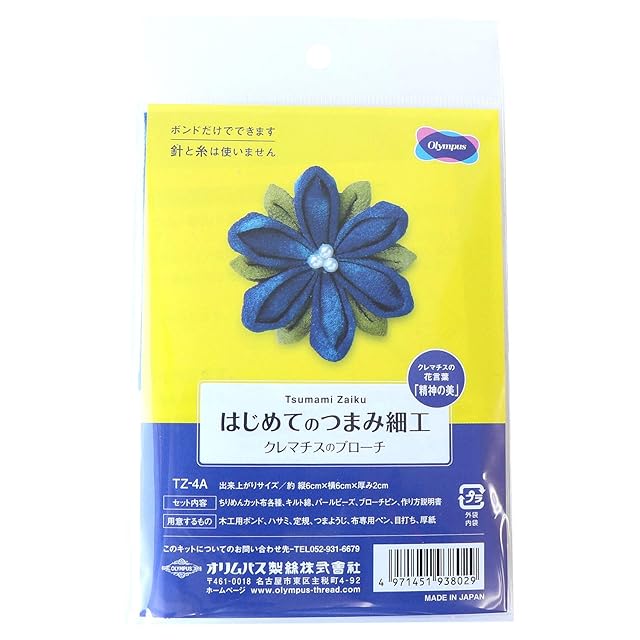 オリムパス製絲(Olympus Thred) はじめてのつまみ細工 キット クレマチスのブローチ H6×W6×D2cm OLY-TZ4A 青