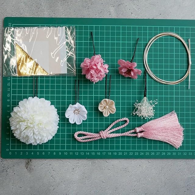 パーツ詳細 つまみ細工2パーツ 造花2パーツ ドライフラワー 2パーツ タッセル 金箔 1シート 水引(ブロンズ1.白1)