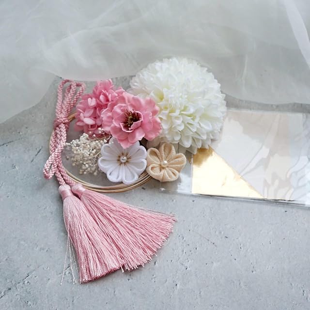 [Lomeri] ロメリ 白 つまみ細工 髪飾り 卒業式 袴 結婚式 水引 かすみ草 和玉 成人式 T2 (ピンク)