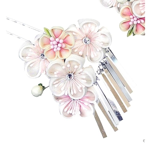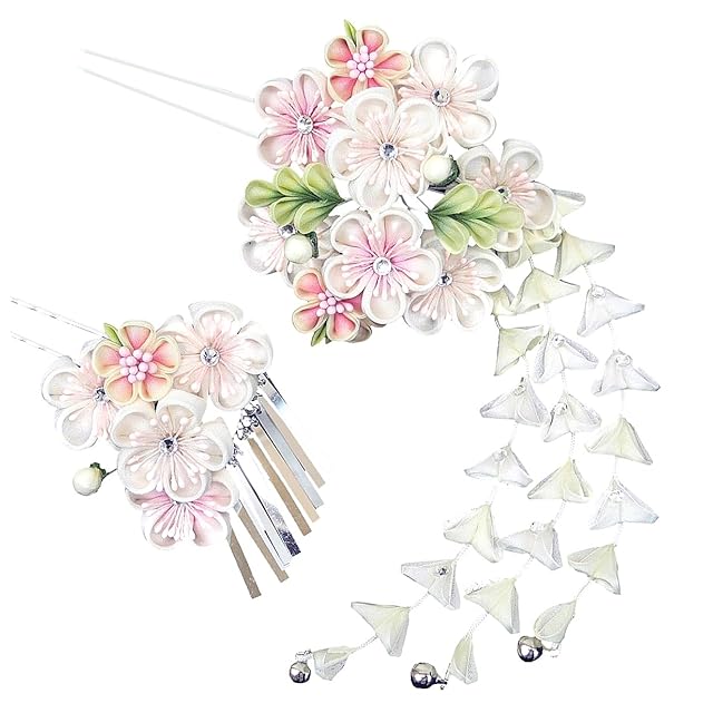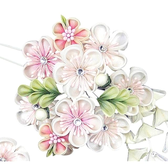髪飾り 2点セット 振袖 成人式 卒業式 七五三 つまみ細工 銀ビラ wk-226 (ホワイト)
