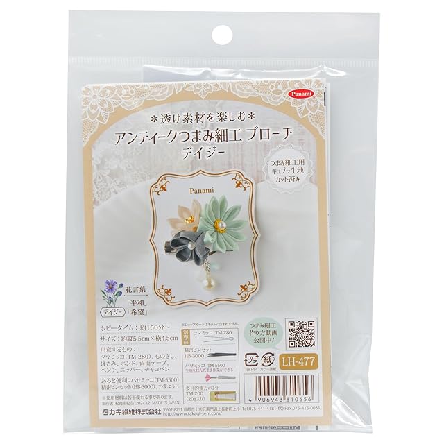 タカギ繊維 Panami 手芸キット 透け素材 「 キュプラ 生地使用」 アンティーク つまみ細工 キット ブローチ デイジー LH-477