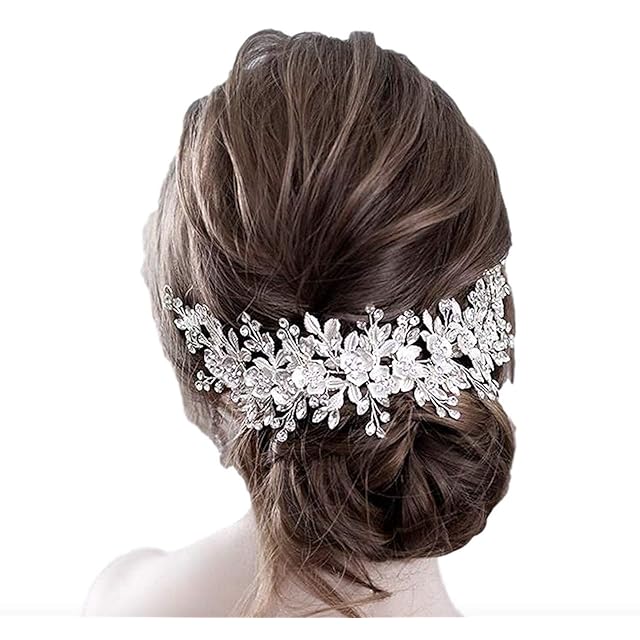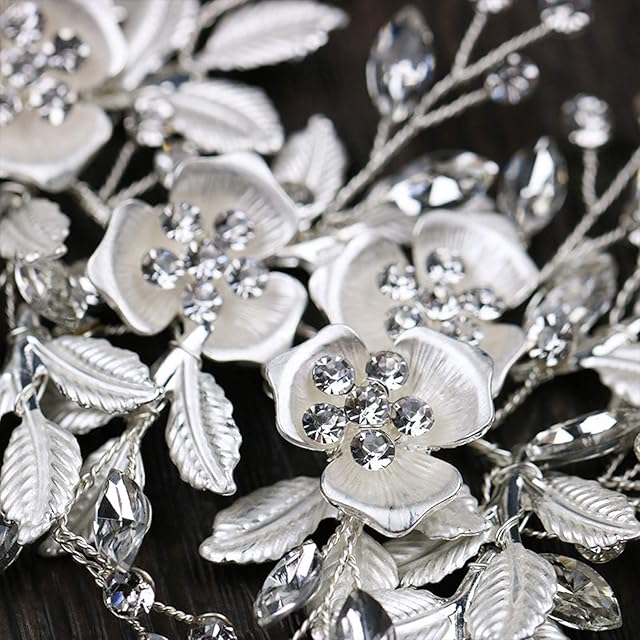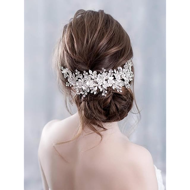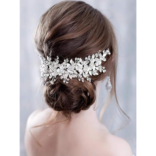プラチナ シルバーフラワーとキラキラ輝くビジューがブライダルヘアに華やかさをプラスしてくれます。