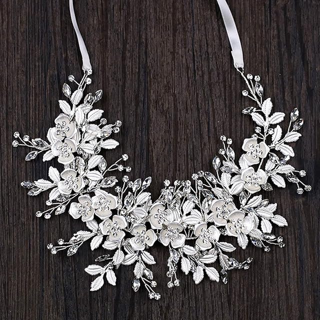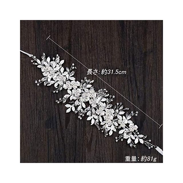 【J's select】リーフ フラワー お花 ウェディング 花嫁 髪飾り ヘッド ドレス 披露宴 結婚式 パーティに<br><br> 結婚式 ウェディング ブライダル 披露宴 演奏会 ダンス ドレス 等に幅広くご使用いただけます。<br> プラチナ シルバーフラワーとキラキラ輝くビジューがブライダルヘアに華やかさをプラスしてくれます。<br> 着画画像はヘアピンで留めておりますが、ヘッドドレスを頭上にしてサテンリボンで後ろで留められるので、どなたでも楽にヘアアレンジできます。ウェディングドレスで披露宴と二次会で イメージを変えたい方にもぴったりです。<br> 爽やかな季節の結婚式、 海外挙式、リゾートウエディング、ガーデンウエディングなどにもおすすめです。<br> 【カラー】シルバー 銀 silver<br> 【サイズ】長さ:約31cm 重さ81g:・商標5952326号取得済み ※本製品はJ's selectのオリジナルモデルです。類似品にご注意ください。 <br>