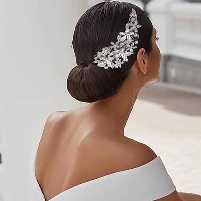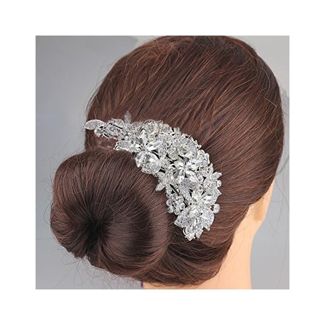 後ろはコームが3箇所についているので角度も変えやすく様々なヘアアレンジに対応できます。トップ、サイド、シニヨンなど付ける位置を変えることでイメージを変えることができます♡♡ ウェディングドレスで挙式と披露宴で イメージを変えたい方にもぴったりです。