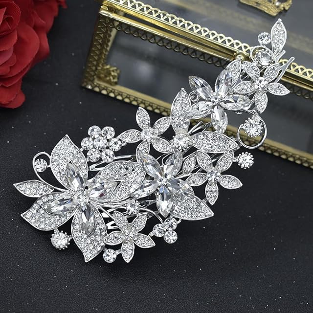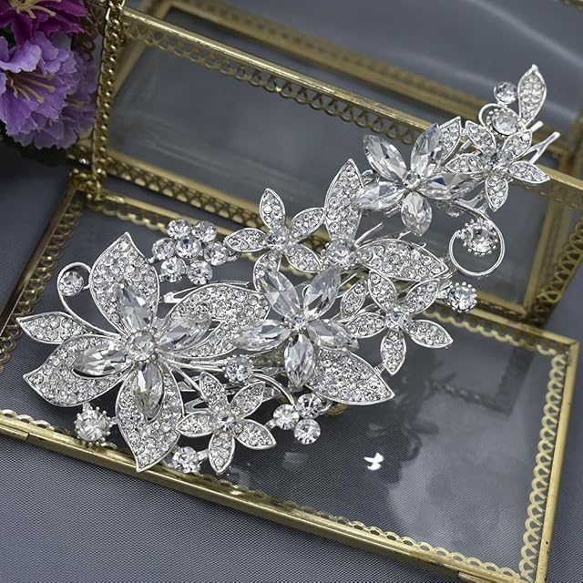 【J's select】【J's select】結婚式 パーティー に ブライダル ビジュー ヘッドドレス 髪飾り<br><br>大人気のフラワー 花がモチーフのヘッドパーツです<br>ビジューに存在感があり、とても華やかにお召しいただけます。<br>後ろはコームが3箇所についているので角度も変えやすく様々なヘアアレンジに対応できます。トップ、サイド、シニヨンなど付ける位置を変えることでイメージを変えることができます。ウェディングドレスで挙式と披露宴で イメージを変えたい方にもぴったりです。<br>挙式でベールの際もよく合いもちろんパーティでも素敵です。 社交ダンス、発表会などでもお使いいただけます。<br>素材:シルバー ストーン クリスタル 海外製(インポート) 【サイズ】高さ約7cm × 横幅(直径)約14.8cm 76g※商標5952326号取得済み