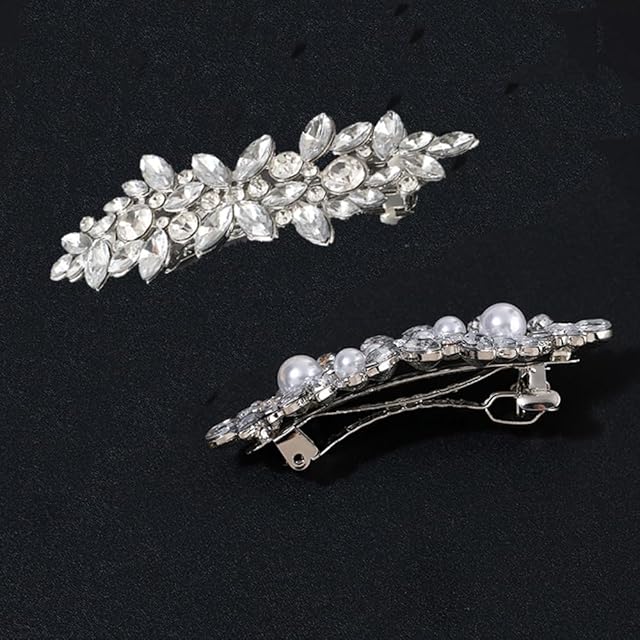 BetterJonny ラインストーン ヘアクリップ 2個 クリスタル パール ヘア バレッタ フラワー スパークル ヘアピン フランス ウェディング プロム ヘアクリップ バレッタ 女性用 ガールズ ブライダル