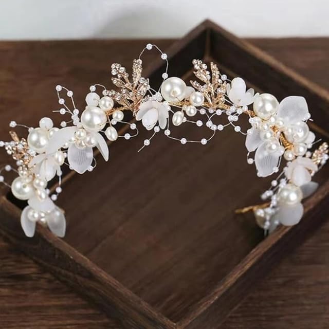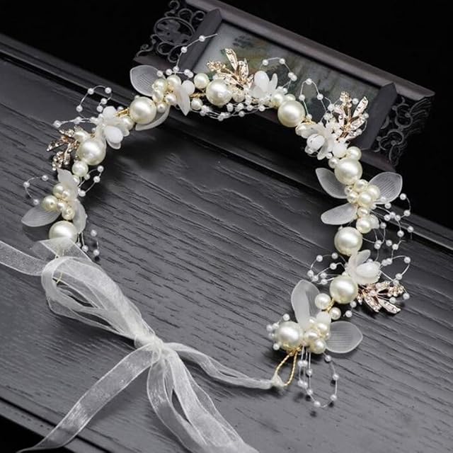 YFFSFDC 髪飾り カチューシャ フラワー ヘアバンド ヘッドドレス 女の子 花嫁 花冠 パール ウェディング パーティー 発表会 入学式 卒業式 ホワイト