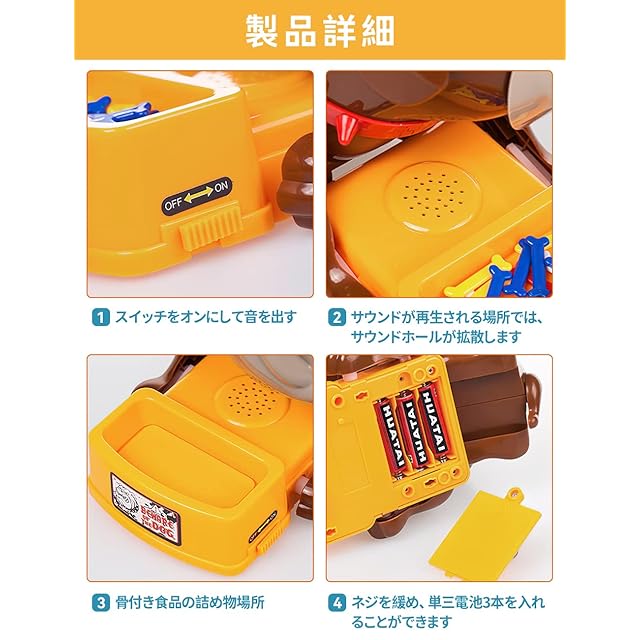 【商品詳細】電池種類:単三電池3本(別売り) セット内容:犬本体*1、プライヤー*1、カード*24、ボーン*36、取扱説明書*1