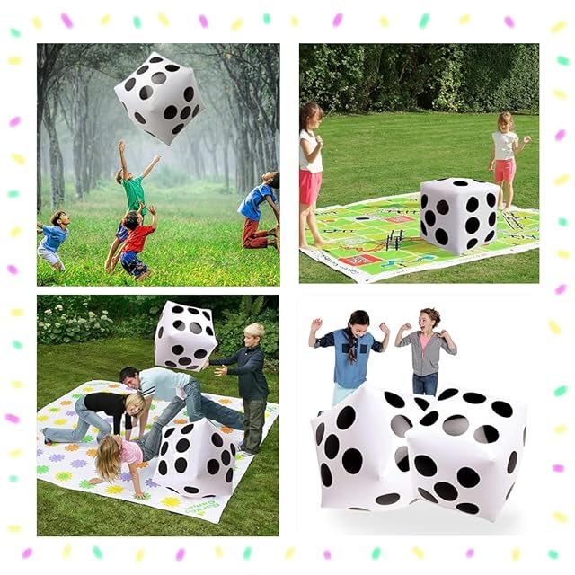 【使い方は色々】:空気を入れて膨らませるタイプなので使わない時はコンパクトに折りたたむことができ、収納や持ち運びにとても便利です。空気ポンプまたは電動エアーポンプでサイコロを大きくすることができます。