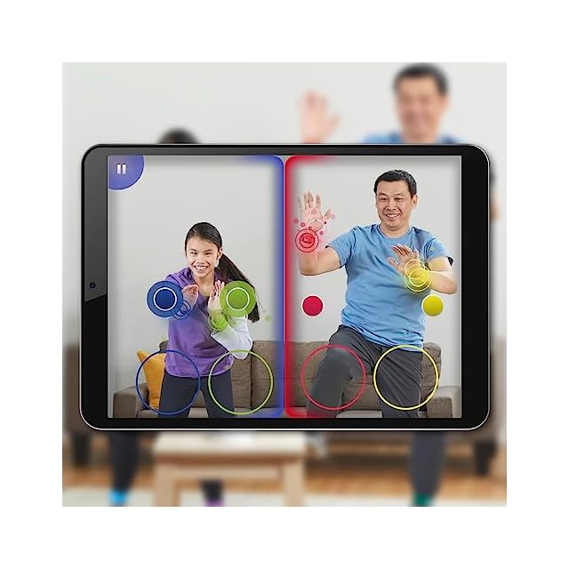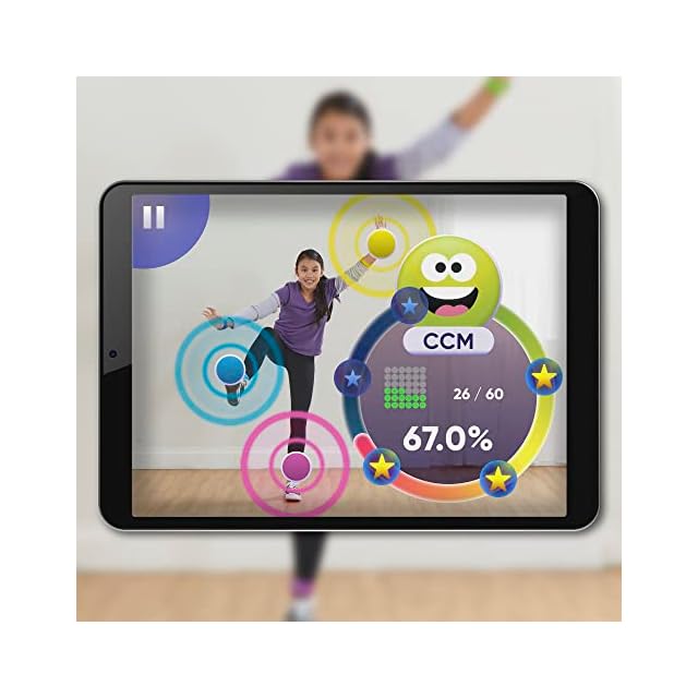 画面上の丸にバンドを合わせよう:拍手をしたり、矢印にそって手を動かしたり、ポーズをとったり、画面上の丸に合わせて手首のバンドを動かそう。いろんな動きの指示をクリアするとポイントを獲得できます。
