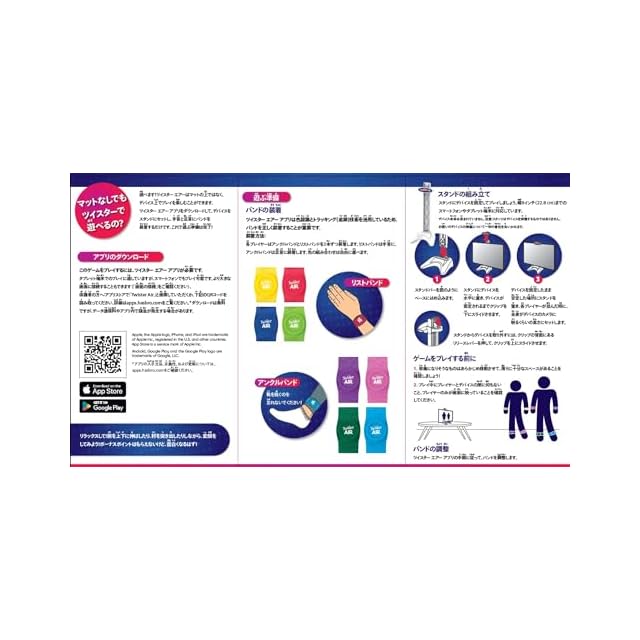 8色のバンドとデバイススタンド: ツイスター エアー リストバンド 4 本、ツイスター エアー アンクルバンド 4 本、プレイ中にデバイスを固定するスタンド付き