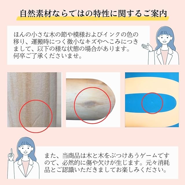 サイズ 投げ棒:約24cm × 直径4cm スキットル:約14.3cm × 直径4.2cm (※公式モルックとはサイズが異なります)
