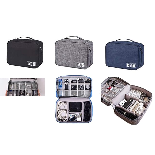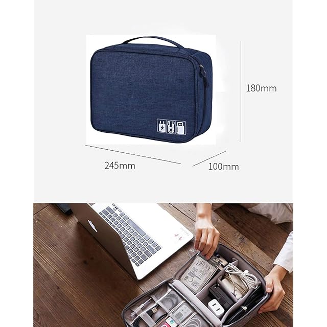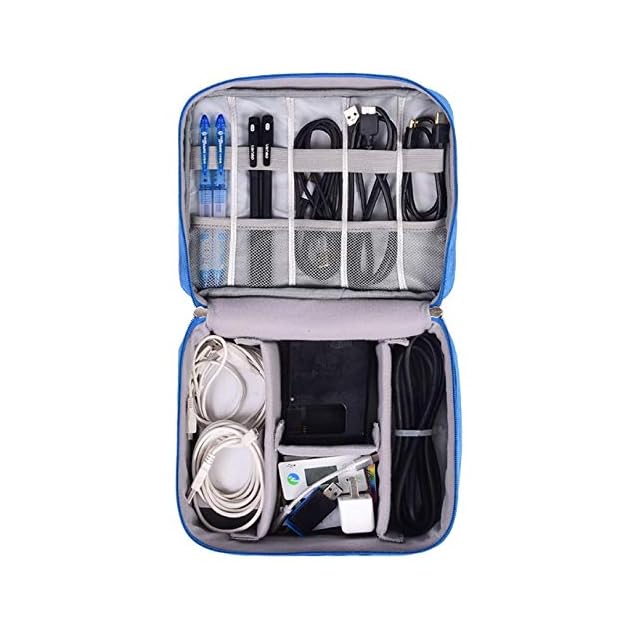 [Chaiclo] PC モバイル 小物 収納ケース マウス ケーブル バッテリー まとめて収納 出張 ビジネスマンの 便利グッズ (ブルー)