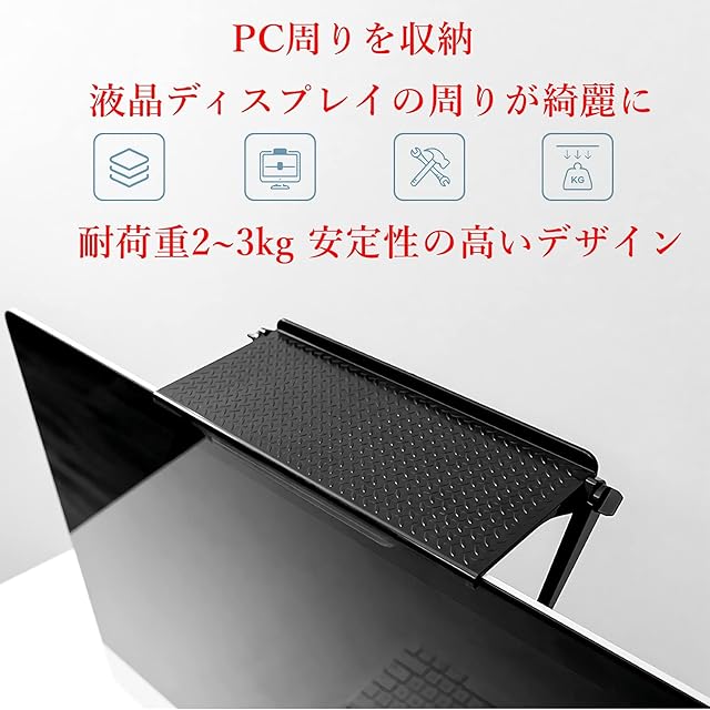 MARUFANG ディスプレイボード モニターボード 小物置き台 小物収納 液晶ディスプレイボード モニター 棚 収納 取り付け簡単 (Black)