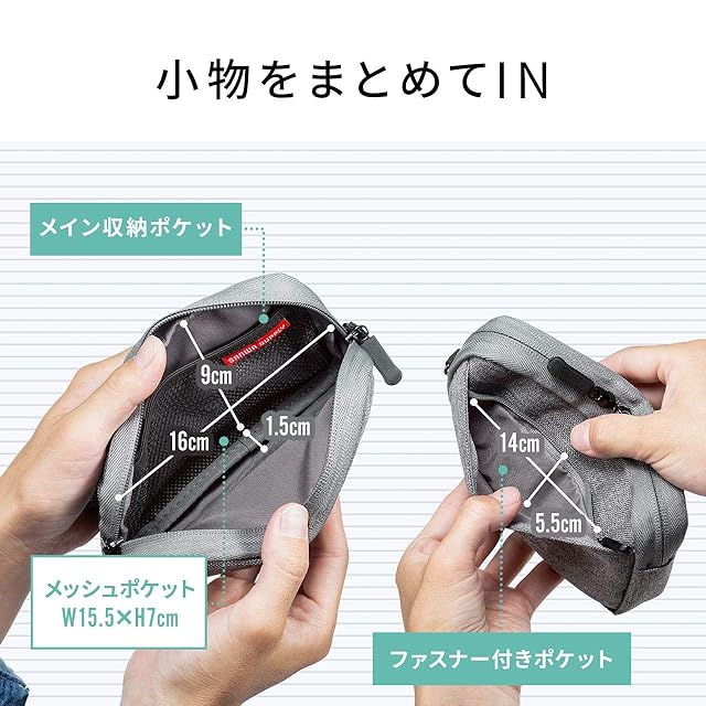 商品名:サンワダイレクト ガジェットポーチ 薄型 旅行 出張 便利グッズ 収納ポーチ Sサイズ グレー 200-BAGIN012GY